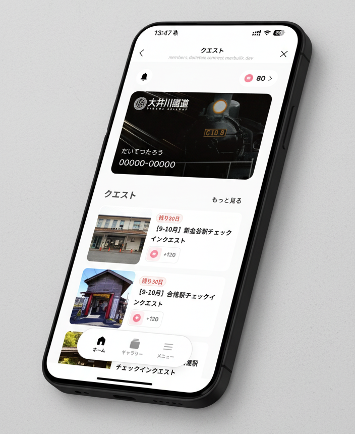 大井川鐵道にお越しいただくことで、NFT(非代替性トークン)技術を活用した限定のデジタルコレクション(ガチャ)を楽しめるほか、大井川鐵道をよりお得に楽しめるお得なクーポンも適時配布予定です。「大鐵members」を活用することで、大井川鐵道の旅をより深く、お得にお楽しみいただけます。