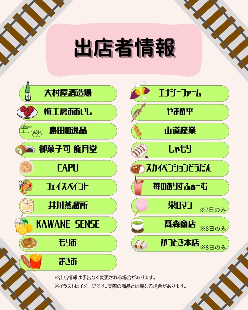 静岡鉄道様/天竜浜名湖鉄道様/伊豆急行様・伊豆箱根鉄道様/東武鉄道様(8日のみ)/銚子電鉄様/JR東海様/遠州鉄道様