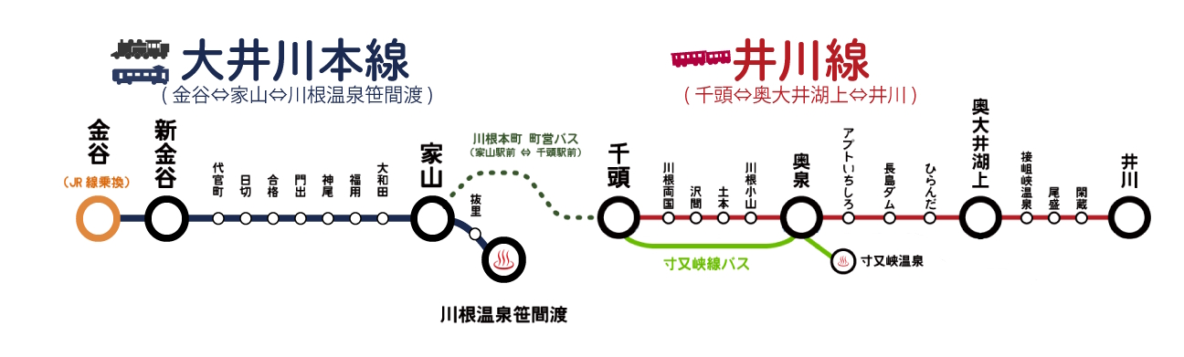 お知らせ 大井川鐵道では、2026年4月6日 (月)にダイヤ改正を行います。 ダイヤ改正後の列車の運転時刻につきましては、以下よりご確認ください。 大井川本線 井川線 運賃・時刻表 大井川本線 時刻表・運賃 井川線 時刻表・運賃 バス 時刻表・運賃